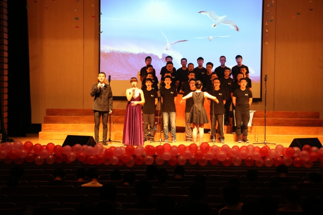 校歌与一首自选歌曲。各班同学们团结合作、大胆创新,在合唱中融入朗诵等多种表演形式,并动手制作了展现各班特色的道具。最终,六班获得一等奖,三班、八班获得二等奖,莱茵中意班、二班、七班获得三等奖。蔡龙俊老师对各班的表现做了精彩点评,并与全惠君老师合唱了一曲《敖包相会》,赢得全场热烈的掌声。