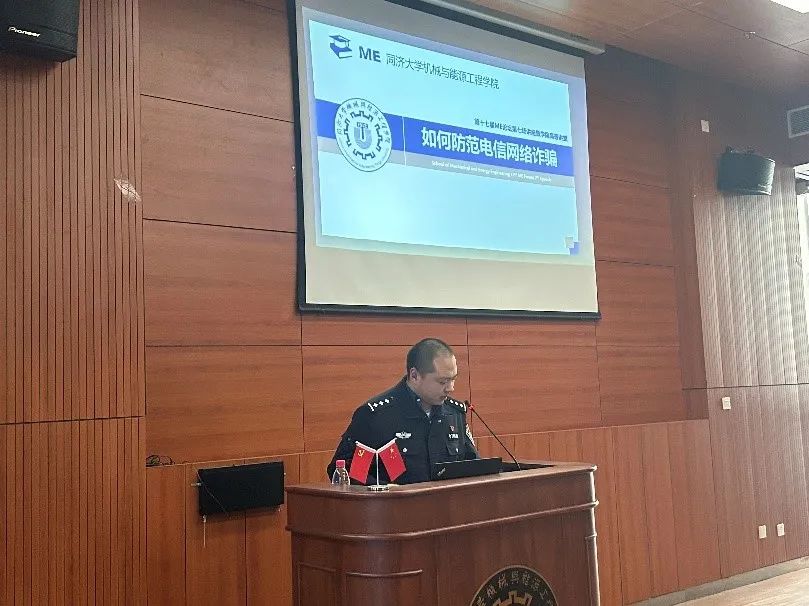 3月14日下午,我院ME论坛第十七届第七场讲座在开物馆A101报告厅成功举办。本次论坛的主讲人为陆航警官,陆航警官为嘉定公安分局刑侦支队反电信网络诈骗中队民警,三级警长,中共党员。陆警官自2016年开始从事反电信网络诈骗工作,主要负责电信网络诈骗案件的侦办、打击及最新作案手法的研究及分析,有着丰富的一线实战经验以及专业技能,对于诈骗案件有着独到而深厚的理解,并常年利用业余时间开展防范电信网络诈骗宣传工作,与嘉定融媒体、嘉定电视台共同录制、拍摄过多档反诈宣传类节目及短视频。曾荣立个人三等功,荣获优秀公务员、区优秀法制讲师等荣誉,连续两年获得“区优秀志愿者”称号。