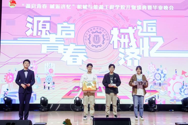 “百十年同济,百十年机械”。为纪念同济机械学科成立110周年,晚会首次发布了纪念logo,三道弧线如同时光飞逝,既代表着学院的百年历程,更寄托着机能师生勇往直前、昂扬奋进的志向。