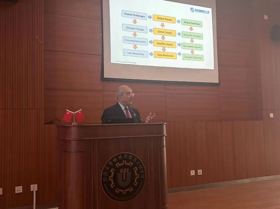 第一部分,教授首先讲述自己的经历,从德国到中国青岛再到上海和同济,因为这段经历,教授对于全球化的问题和挑战有着深刻而独特的见解。他将目前面临的全球挑战归结为三个,分别是全球气候变化、持续增加的人口和日益减少的资源。为应对这些问题,我们需要发展绿色能源,比如大力发展氢能等可持续清洁能源。更多的人口带来更繁重的交通压力,越来越多的车辆又加重污染的排放,因此我们需要更先进和清洁的交通工具。随着科技和生活的进步,工业消耗的不可再生资源日益增多,因此我们需要尽可能的节约资源,不断推进循环经济的发展。