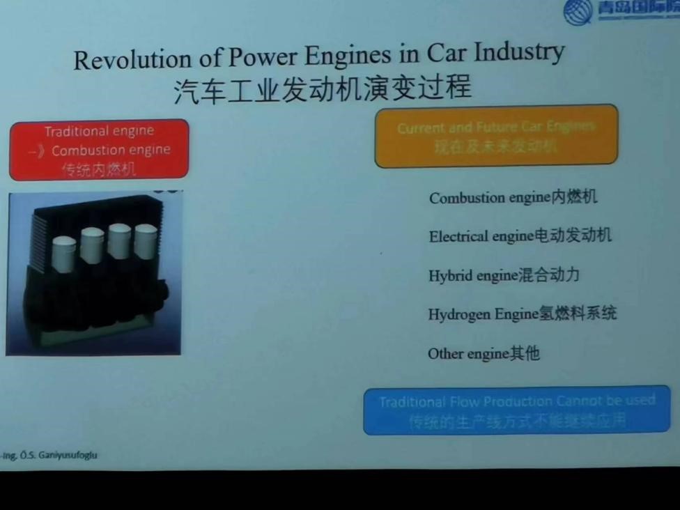 第二部分,教授为我们详细讲述目前在环保和创新理论引领下的汽车工业。发动机是汽车的核心部件,传统的发动机为烧汽油的内燃机,目前电动发电机、混合动力和氢燃料系统等类型的发动机正蓬勃发展。尽管传统的内燃机已经无法满足目前绿色清洁的需求,但是教授也指出永远是市场决定的我们需要哪种发动机。其中,最受关注的氢动力系统,由于需要产氢、储氢、输运等等较长的流程和工艺,虽然氢动力系统很适合重型汽车,但是距离发展成熟上市还有五到十年的时间,其是一种未来能源。需汽油的内燃机确实已经被逐步淘汰,但是内燃机也可以燃氢,这也是一种清洁发动机。