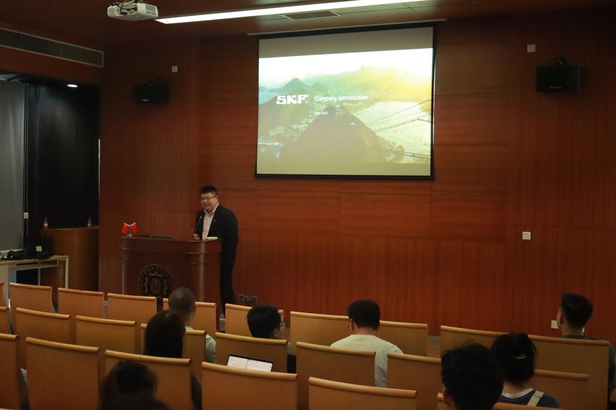 讲座的最开始,斯凯孚公司相关工作人员介绍了斯凯孚公司的大致情况。他强调SKF是一家致力于技术与创新的公司,公司以“Together ,we re-imagine rotation for a better tommorrow”为愿景。
