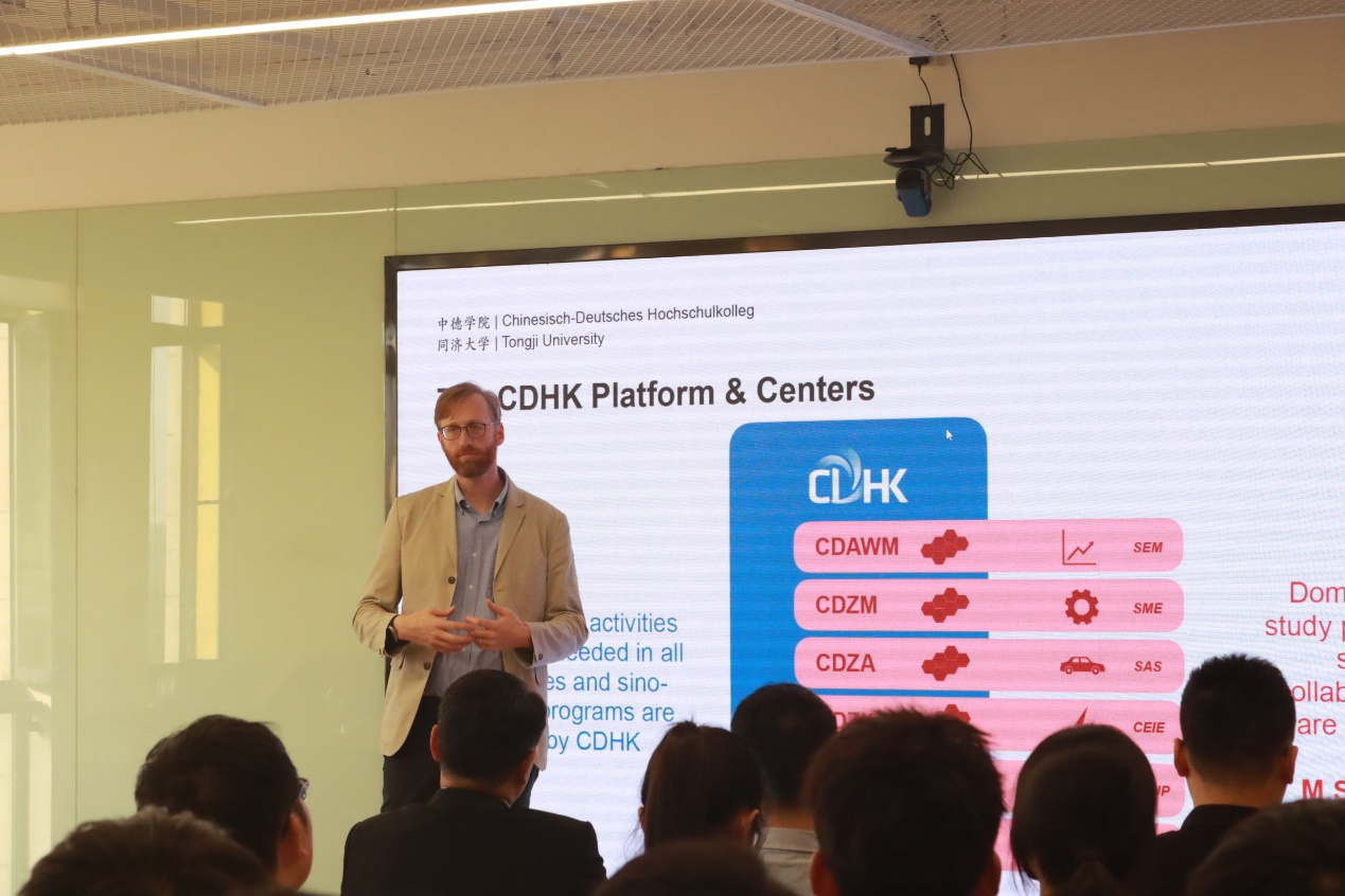 负责中德科学交流工作。2023年3月起担任CDHK德方副主任,负责跨文化教育与商业企业关联。本次论坛中Jan Harder教授的报告主题为“Academic Work and Life in Germany”。Jan Harder教授在讲座中分享了学生在德国大学的学术生涯,分为学士/硕士学习阶段和博士阶段。在学士和硕士学习阶段,德国大学的学习模式注重实践性和创新性,课程设置十分广泛,为学生提供了丰富多样的选择。在博士阶段,德国大学的研究环境为博士生提供了深入研究的机会。博士生的研究工作通常在研究实验室或研究机构中进行,与导师和其他研究人员紧密合作。德国大学的学术生涯是充满挑战与机遇的,除了在学业和工作条件方面存在明显的形式差异外,德国大学的生活也为外国学生和博士生提供了丰富多彩的社会和日常生活体验。
