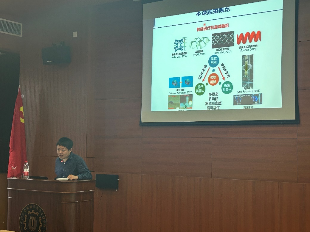 讲座开始前,唐教授为我们介绍了智能医疗机器课题组的概况,围绕着柔软机械,引申出柔软结构、医疗机器人、仿生机器人等专业方向。
