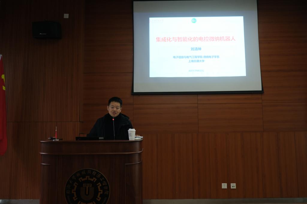 2023年11月15日下午,我院ME论坛第十八届第十场讲座在开物馆A101成功举办。本次讲座的主题是“集成化与智能化的电控微纳机器人”。讲座由我院唐一超教授主持。