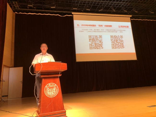 随后,于颖副书记代表学院纪委在全院展开廉政教育专题学习,通报了人事处关于教职工兼职报备的通知,提醒大家严格规范使用科研经费,节约粮食、避免浪费,遵守研究生招生纪律,以及2020年双节“四风问题”。