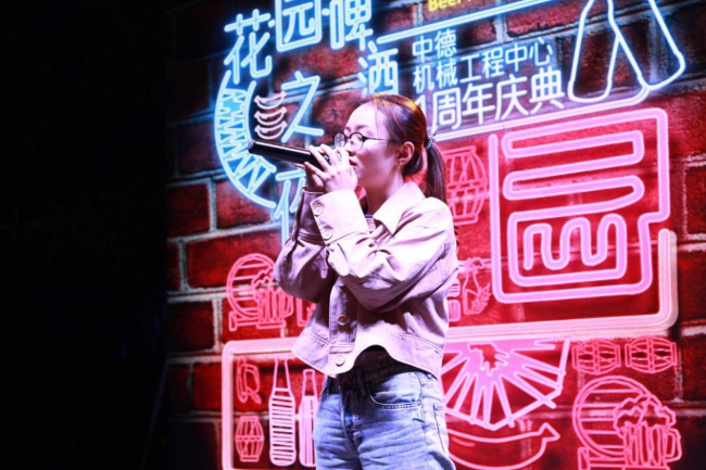 同学们为花园啤酒之夜带来精彩的节目表演。伴随着音乐和原汁原味的德式美食,来宾们共同举杯,尽情欢聚,在金秋十月的这一时刻与中德机械工程中心共同分享一周年的喜悦,为中心未来发展送上美好期望与祝福。