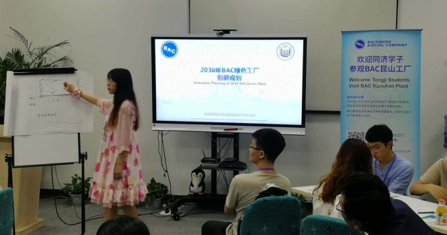 首先,BAC公司向同学们介绍了冷却塔行业前沿动态和BAC实习生招聘计划。接下来,同学们分组参观工厂生产流水线。最后,分组展开以“2030年BAC绿色工厂创新规划”为主题的设计竞赛活动。该环节不仅是对同学们所学知识的实际运用能力的检验,同时也考验着同学们的团队协作能力和沟通交流能力。学生们在活动过程中与BAC领导团队充分互动,收获了许多在就业择业方面的宝贵建议。