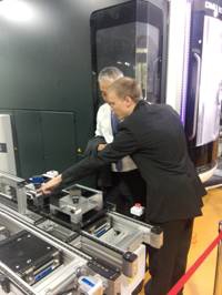 会议间歇中与会者参观了AMTCIndustry 4.0 @ AMTC - Demonstration line示范线,展示了运用制造批量大小为1+的工业4.0技术解决方案。