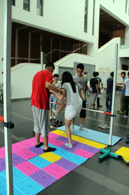 6月7号下午2点,本次团体素拓活动正式开始。首先进行人员分组,根据本次活动的实际到场人数,参加人员被分为了4组进行活动。活动分为团体计时赛,团体合作赛和团体对抗赛进行。团体计时赛分为4个小项依次进行,着重考验了团体之间配合的默契度与反应速度,像其中的绑腿行走与蒙眼捡球项目,都对团体之间的默契提出了较高的要求。团体计时赛结束后,4个小组稍作休息,进行下一个团体合作赛。在团体合作赛之中,两个活动项目都着重考验了团体之间分工的合理性与协作能力,提高了大家的团队精神。最后一项的团体对抗赛则将活动推至高潮,在各组的直接对抗之中角逐出最后的优胜者。