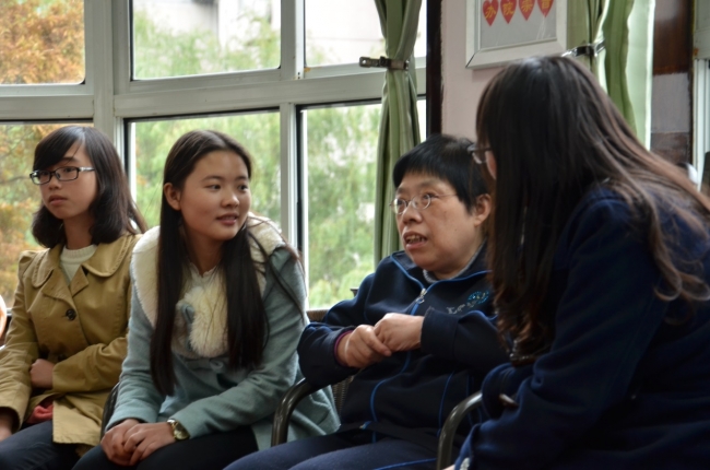 聊天与运动之后,志愿者带领老人们合唱歌曲,从上世纪的经典老歌《东方红》,到流行歌曲《龙的传人》、《水手》等。歌声中充满了老人们的回忆,这份回忆也让志愿者同学们感到动容。