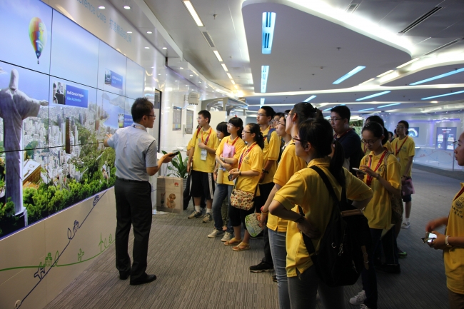 营员们在工作人员的讲解下参观了华为公司及其科技园区。华为科技园区风景秀丽,花草丰茂,营员们在参观中了解到许多特色建设以及非常人性化的设计,并不时驻足留影。在公司内部,工作人员向营员们详细介绍了公司所使用和正在研发的新技术,在科技展厅,同学们也有机会体验了华为公司的科技产品,感受到了现代信息技术给人们带来的便利。营员们还观看了公司的宣传片,了解了华为公司的历史、发展现状以及对未来的展望。
