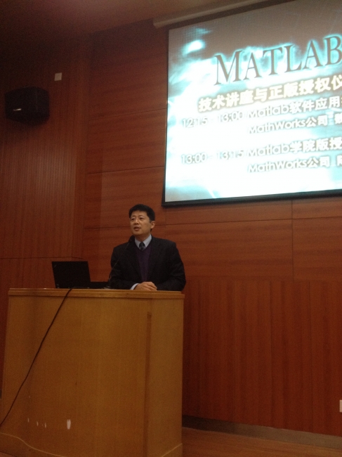 常务副院长李理光教授首先介绍了学院与Mathworks公司的合作情况,他指出matlab是在学生科研过程中运用较为广泛的软件,学院花大量经费争取到Matlab学院版的正版授权是希望为学生创造良好的科研条件,希望为更多的老师和同学提供帮助。他同时感谢了学院专业基础教学部老师为学院版授权过程中所做的大量工作,希望基础部老师在面向全校的Matlab选修课的基础上,开设更多教学讲座和课程来指导学生。
