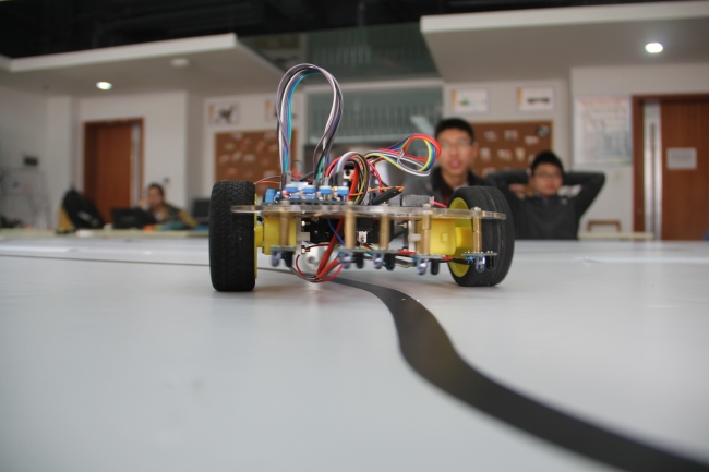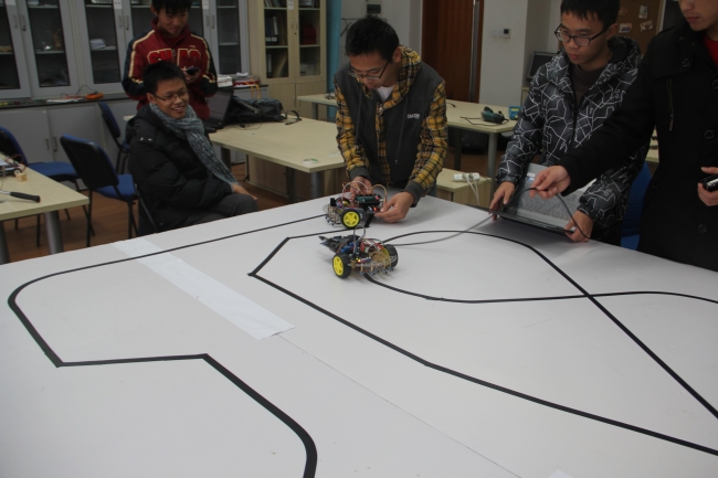 机器人爱好者协会会内智能小车循迹比赛在开物馆A204举行。