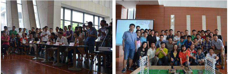 决赛当日,各个“足球小将”都开足马力,纷纷使出浑身解数,一场场攻门拉锯战在机械学院的大厅里火爆上演。精彩的足球大战更是在评委和观众面前讨得频频喝彩,此起彼伏的掌声和助威声响彻整个球场,不断有新的同学和老师被激烈的比赛吸引过来,而一个个机器人更是以轰轰的马达声宣誓着自我的实力。一个个奇特构造的机器人,在比赛队员的操纵下争夺着足球,射向球门,好不热闹。尤其是在冠亚军决赛之际,比赛特制的球场被围的水泄不通;而角逐冠亚军的两支队伍也不负观众的期望,上演了一场场好戏,赢得观众的一番好评!最后,经过上、下两个半场的比赛,由于学海同学领队的变速齿轮队赢得本次全场比赛的冠军。