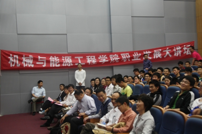 来自上海现代建筑设计(集团)有限公司的资深总工程师寿炜炜教授级高工为了我们带来了题为《绿色建筑设计-上海国际商务花园科技产业楼》的报告,来自华东建筑设计研究院的总工程师马伟骏教授级高工做了题为《虹桥商务区一期能源中心设计》的报告,来自中船总公司第九设计研究院的暖通专业负责人朱伟民研究员做了题为《高精度恒温恒湿空调设计介绍》的报告,来自上海核工程研究设计院的副总工程师高级工程师张彦做了题为《暖通空调技术在核电厂》的报告。四位来自设计一线的资深总师,展示了各自在生态建筑、区域能源供应、特殊环境空调设计方面的最新成果,报告受到同学们的热烈欢迎,四平路校区的本科一年级同学、嘉定校区的本科二、三、四年级同学以及硕士、博士研究生约200人参加本次活动。会场上,同学也与专家们从专业发展前景、专业知识学习、课外知识竞赛等诸多方面进行了深入、热烈的交流。