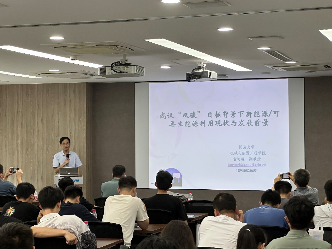 接下来的科普讲座环节,副院长高军教授为我院师生、大金员工和居民代表做题为“健康厨房的油烟污染控制与空调技术”的报告,演讲围绕“厨房颗粒物散发与暴露、厨房通风、厨房空调、厨房人体热舒适”等话题,详细分析了中国厨房当前所存在的空气品质、通风问题,提出健康厨房应引起行业关注,这也正是当前暖通领域所要克服的难点和发展的方向之一。系教工支部书记俞海淼副教授做题为“浅议‘双碳’目标背景下的新能源、可再生能源利用现状与发展前景”的报告,详细介绍了当前中国和世界的能源分类与现状,对比了不同种类能源的优缺点,并提出新能源是当前能源工程发展的重点方向,新能源不仅有利于能源再生利用、提高能源效率,更对中国乃至世界的碳中和目标有重要贡献。大金技术开发研究院的钟鸣部长做题为“以热泵与VRV为核心技术的节能解决方案发展”的报告,让大家了解到大金在节能减排、智慧冷暖方面所积蓄的力量。在会议的最后,设置了有奖科普问答活动环节,由主持人提出空调制冷技术的相关问题,现场观众进行抢答,并在活动现场为回答正确的听众颁发了纪念品。