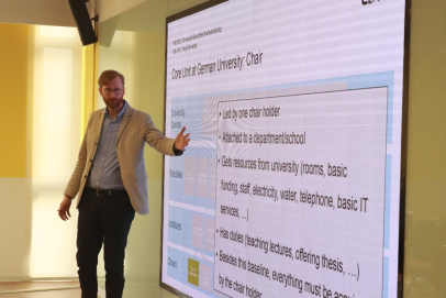 下半场的学术报告由中德学院副院长Jan Harder博士开启,他的报告主题为“德国学术与生活”,介绍了德国职业技术教育与大学教育的同等重要性以及德国高等教育的不同阶段。
