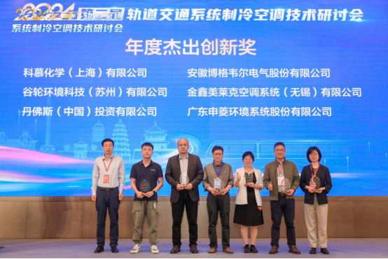 科慕化学(上海)有限公司、安徽博格韦尔电气股份有限公司、谷轮环境科技(苏州)有限公司、金鑫美莱克空调系统(无锡)有限公司、丹佛斯(中国)投资有限公司和广东申菱环境系统股份有限公司荣获年度杰出创新奖。