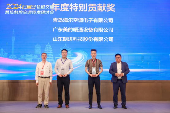 在颁奖环节,青岛海尔空调电子有限公司、广东美的暖通设备有限公司以及山东朗进科技股份有限公司荣获年度特别贡献奖。
