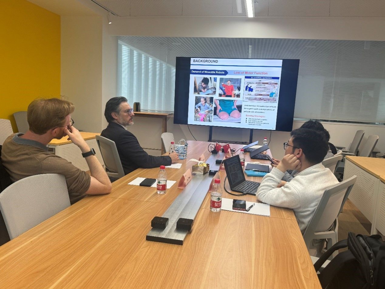 交流会上闵峻英、唐一超、夏海生分别介绍了学院国际合作情况、智能医疗机器人及可穿戴机器人课题组研究内容,双方就机器人等相关领域合作进行探讨。随后,Sami Haddadin教授参观了开物馆一楼多个智能制造和机器人领域的实验室。
