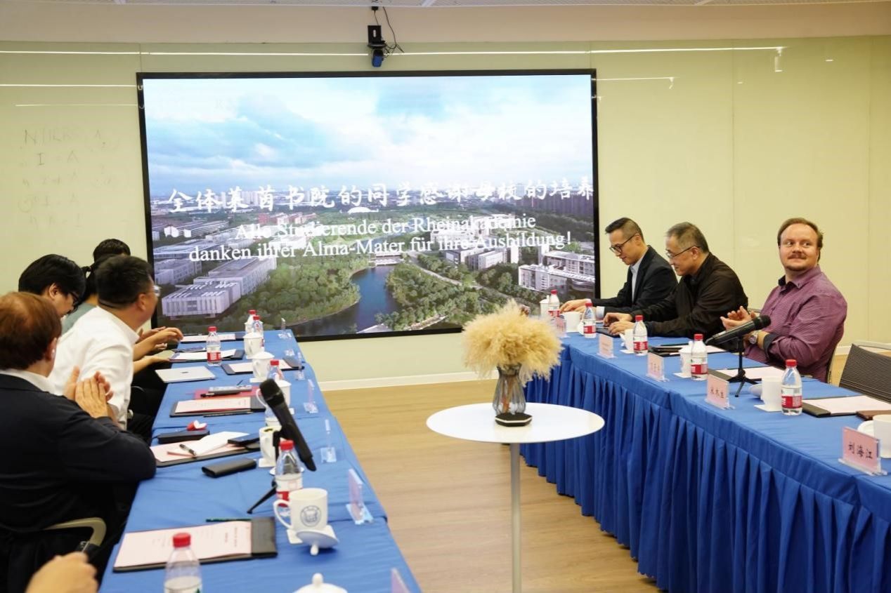 外事办公室主任殷文,嘉定校区管委办主任周斌,中德学院副院长、中德博士生院院长汤奇荣,中德学院副院长、中德联合研究中心(av天堂