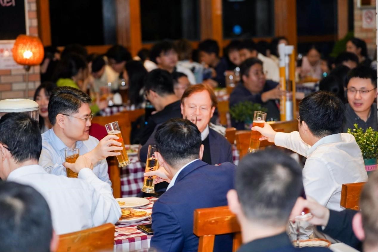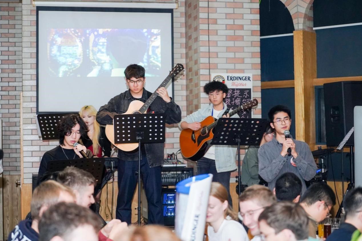 莱茵书院2024级的同学们为中德文化交流之夜带来了精彩的节目表演。伴随着音乐、舞蹈、游戏和原汁原味的德式美食,来宾们共同举杯,在深秋的这一时刻与中德机械工程中心及莱茵书院共同分享过去收获的喜悦,并为中心和书院未来发展送上美好祝福。