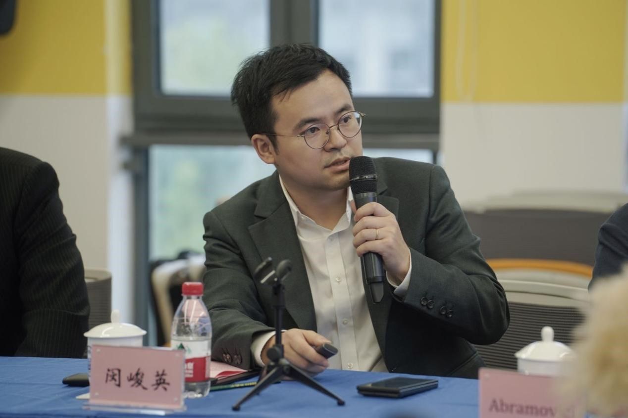 在交流研讨环节,嘉定校区管委办主任周斌,中德学院副院长、中德博士生院院长汤奇荣、,中德学院副院长、中德联合研究中心(av天堂