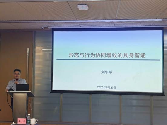 刘华平教授以《具身协同交互与学习》为题,面向态势理解在适应异构机器人平台感知、动作的能力差异,以及适应广域动态场景高效、鲁棒的感知这两大类多机器人协同任务需求,针对如何利用异构多机器人的感知与学习能力实现集群增效与行为涌现,介绍了相关的研究进展。
