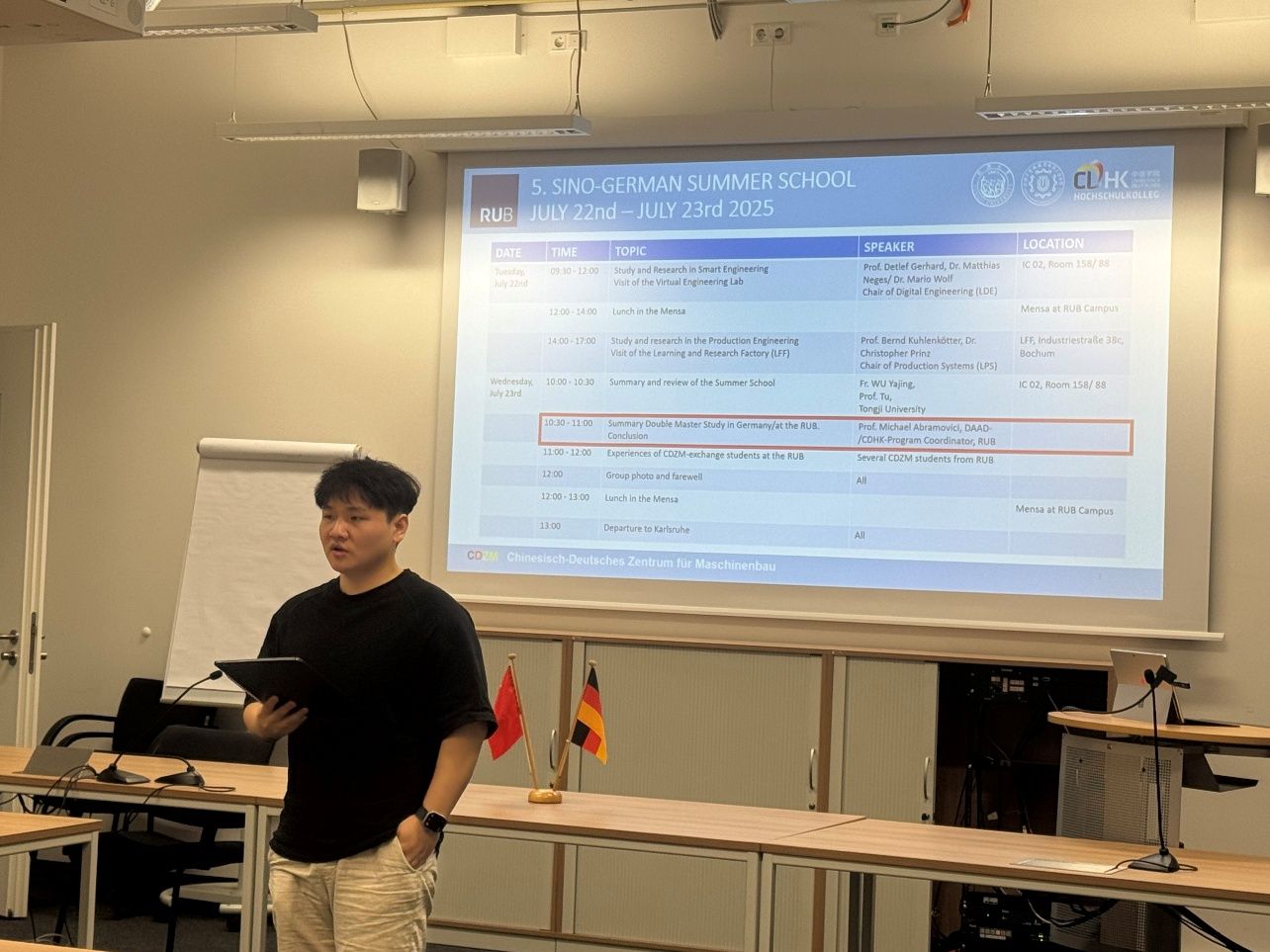 在闭营仪式上,团队成员代表分享本次德国行的心得体会。目前正在波鸿鲁尔大学攻读双学位的av天堂